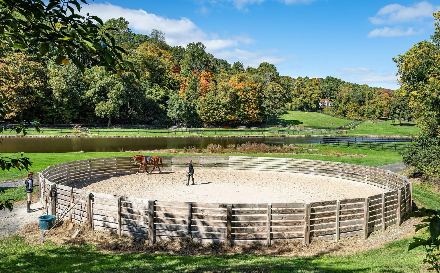 Three modern barns with 69 stalls, wash stalls, tack rooms, laundry, and full haylofts — designed for comfort and efficiency.